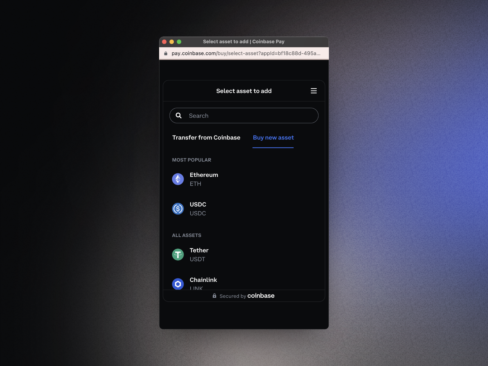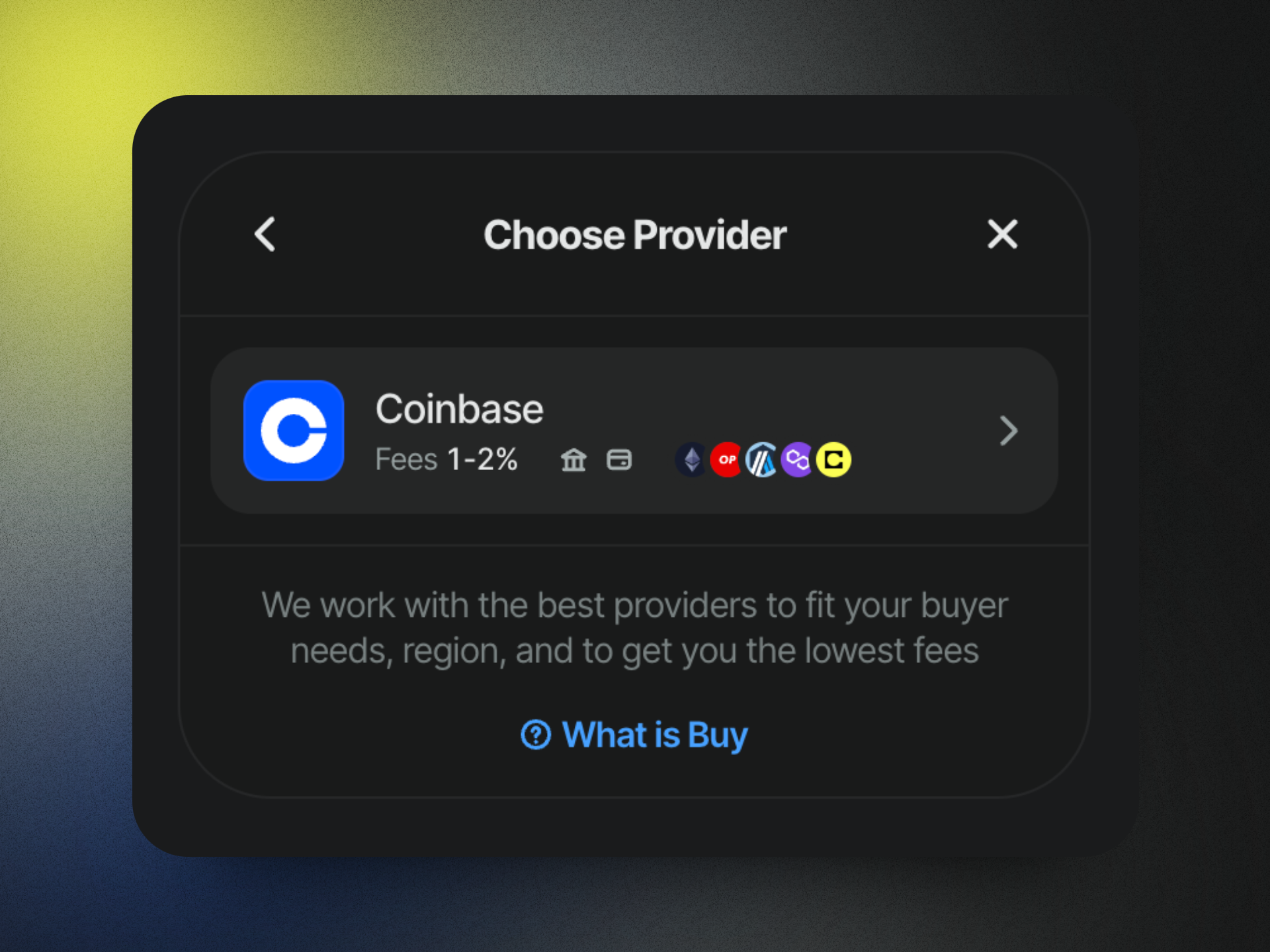 On-Ramp securely provides users access to over 100 cryptocurrencies from right within your app. In just a few clicks, users can purchase tokens to support in-app activity and transactions across multiple chains. Set up in minutes with just one line of code.